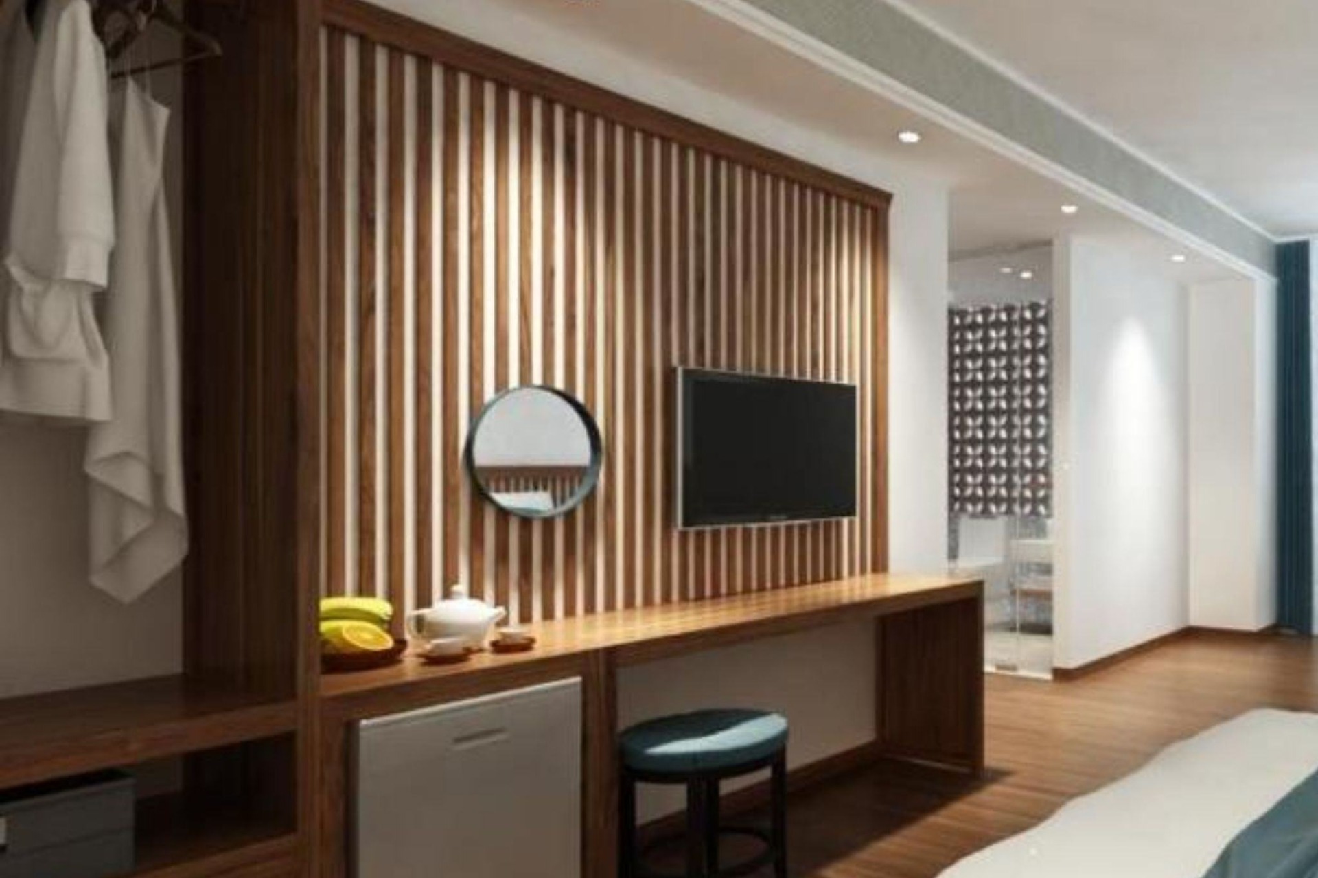 Rooms come with a desk and a kettle.